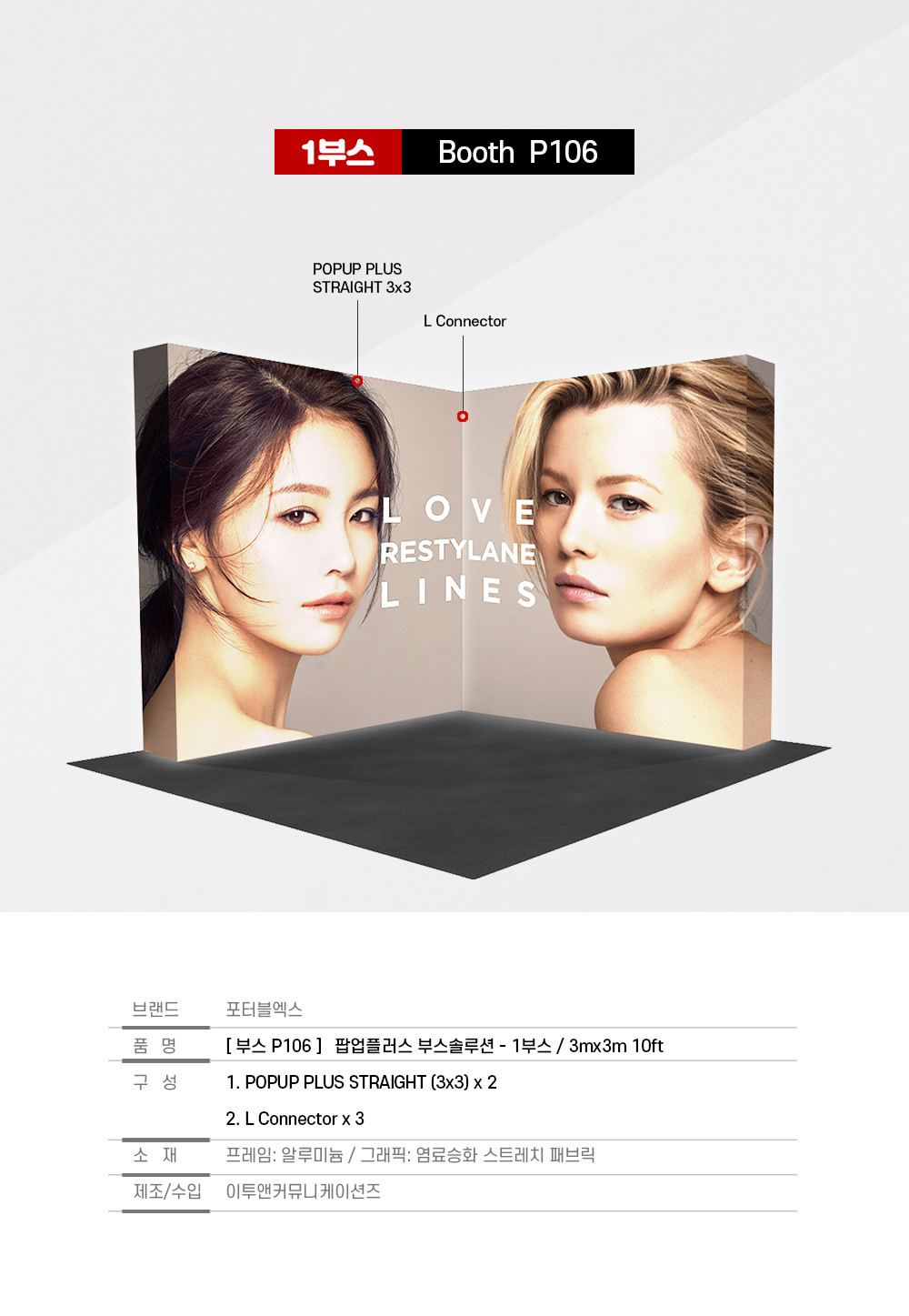 팝업플러스 프레임과 카운터를 조합해 구성한 부스솔루션입니다.