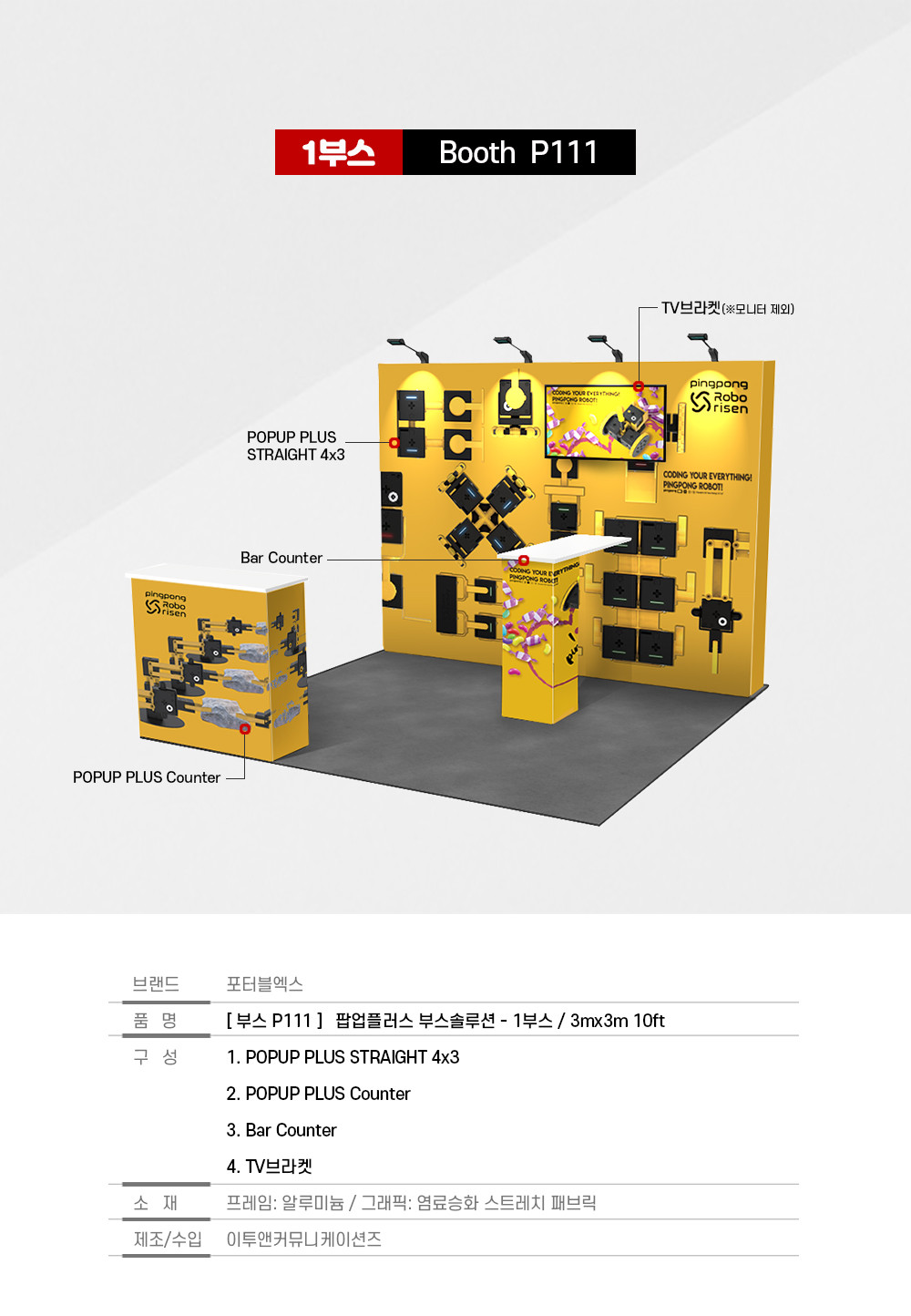 팝업플러스 프레임과 카운터를 조합해 구성한 부스솔루션입니다.