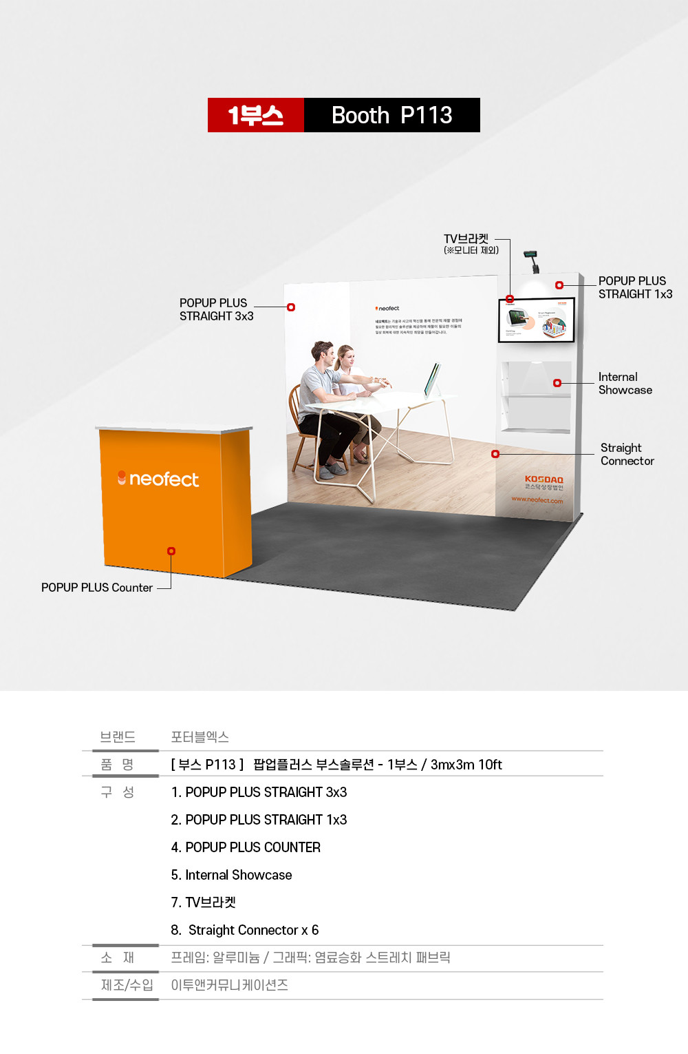 팝업플러스 프레임과 카운터를 조합해 구성한 부스솔루션입니다.