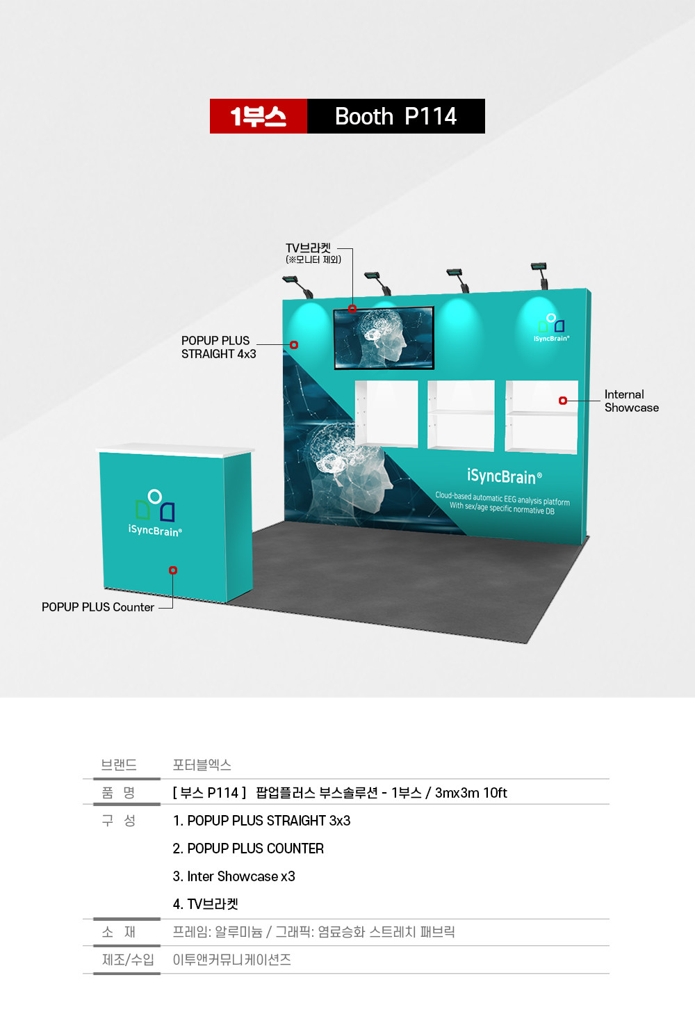 팝업플러스 프레임과 카운터를 조합해 구성한 부스솔루션입니다.