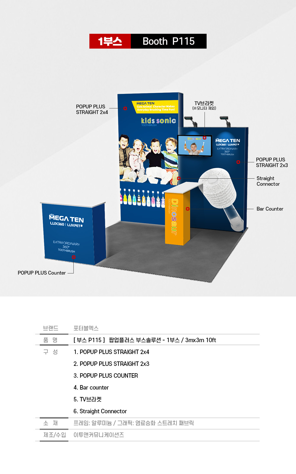 팝업플러스 프레임과 카운터를 조합해 구성한 부스솔루션입니다.