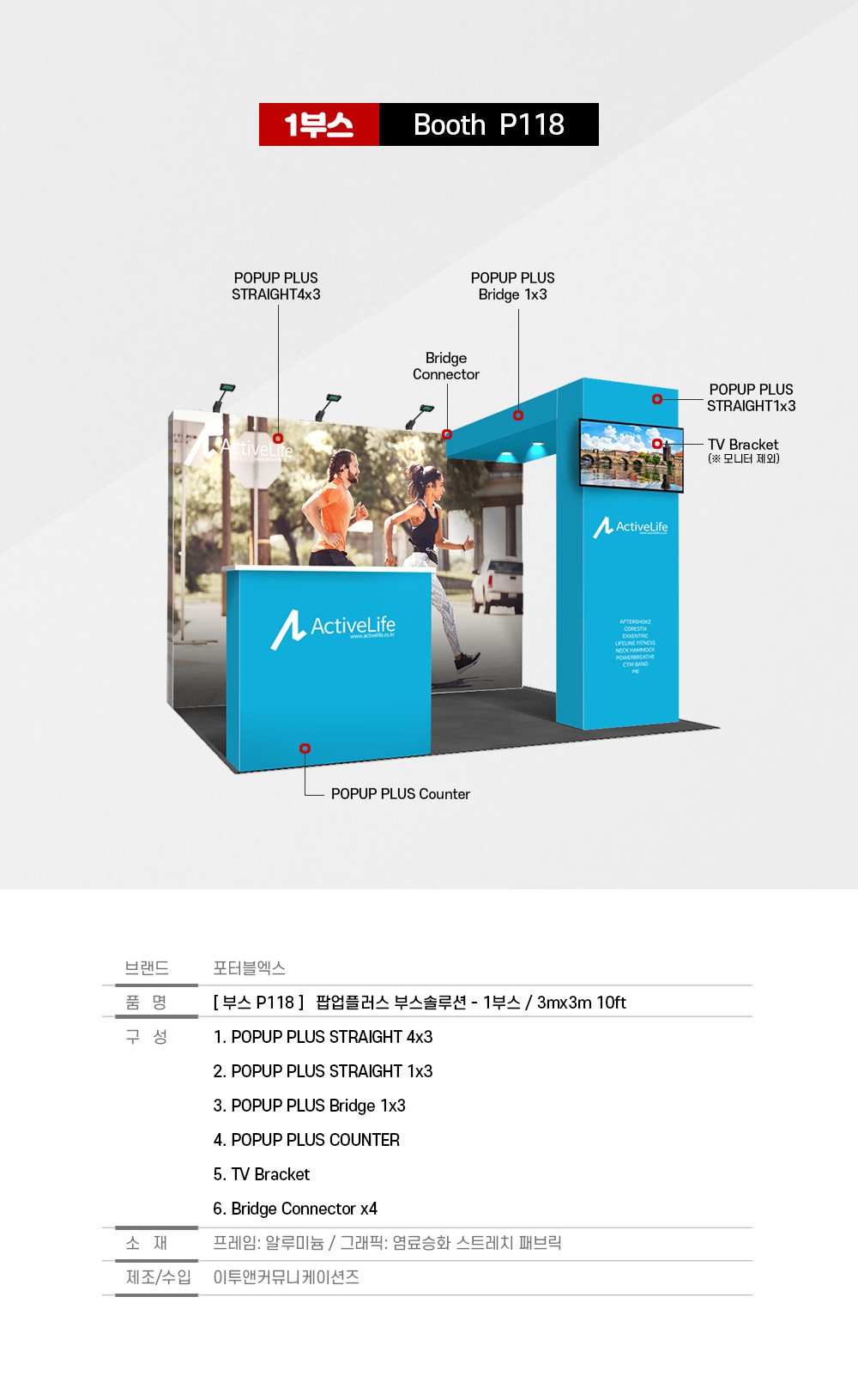 팝업플러스 프레임과 카운터를 조합해 구성한 부스솔루션입니다.