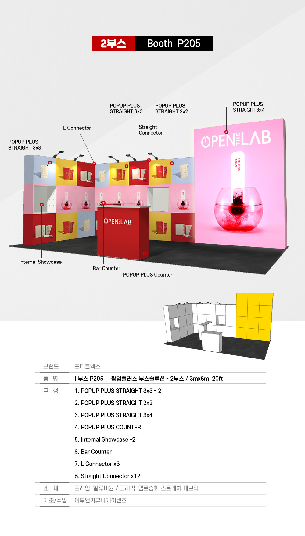 팝업플러스 프레임과 카운터를 조합해 구성한 부스솔루션입니다.