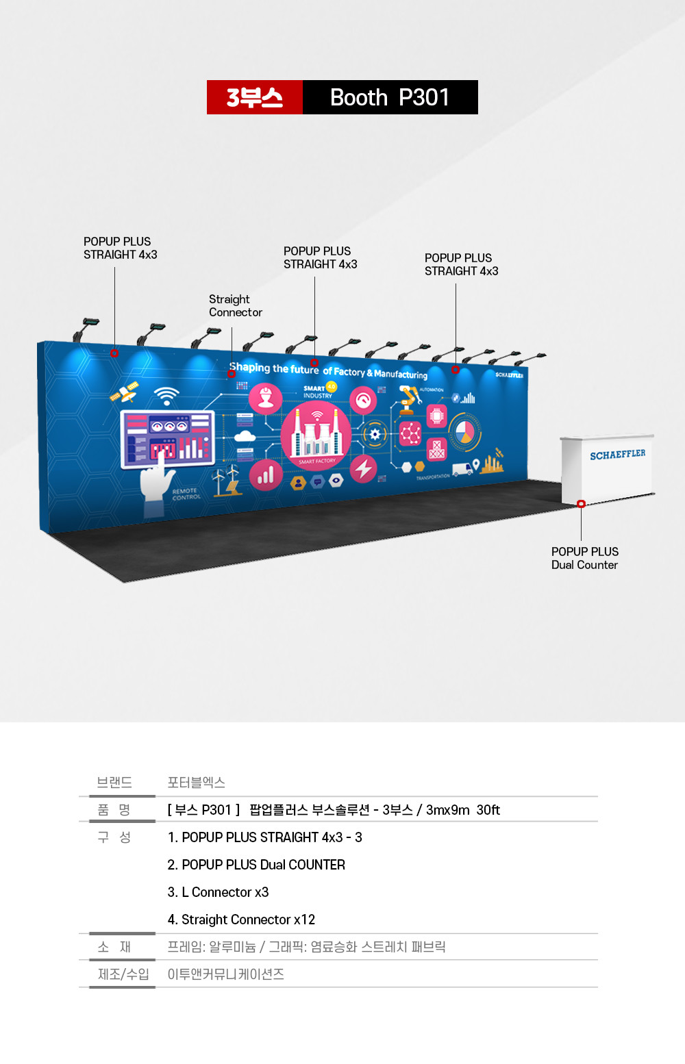팝업플러스 프레임과 카운터를 조합해 구성한 부스솔루션입니다.