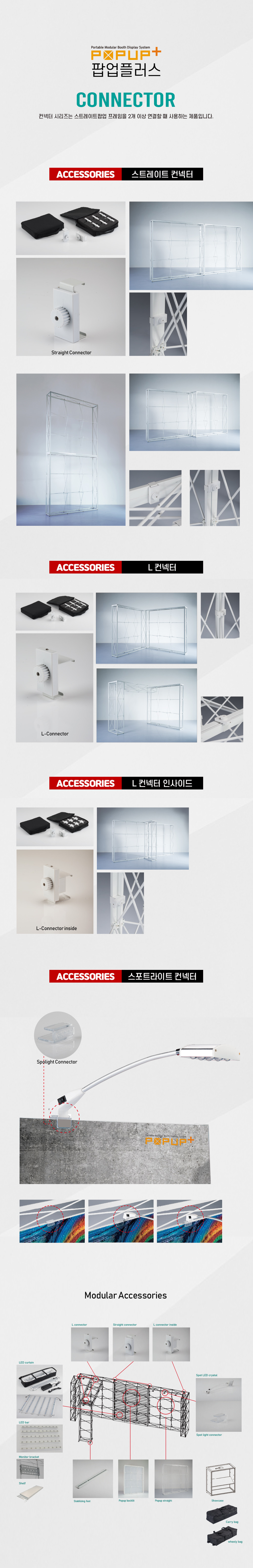 컨넥터 시리즈는 스트레이트팝업 프레임을 2개 이상 연결할 때 사용하는 제품입니다.
