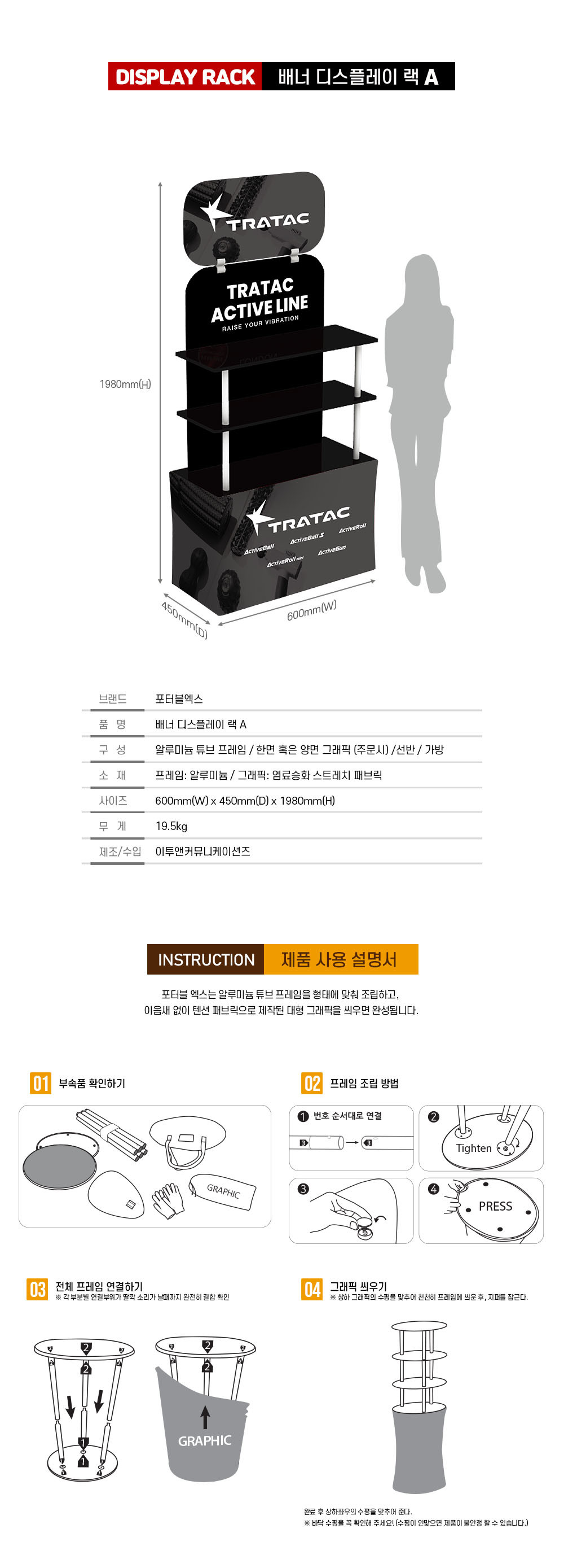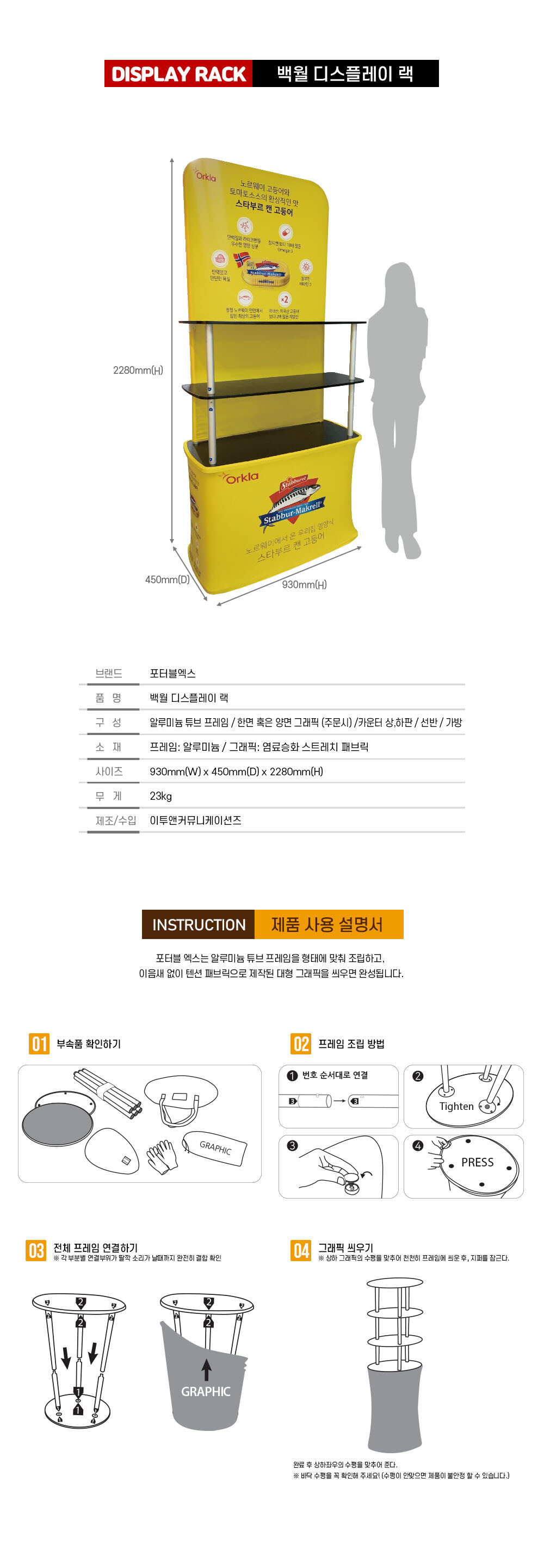 BACK Wall Display Rack Series · 고해상도 그래픽을 통한 홍보 효과 · 공구 없이 쉽고, 빠른 설치와 해체 · 이동이 편리한 경량의 알루미늄 프레임 · 견고한 아크릴 선반 탑재 · 전시부스, 리테일 숍 등의 디스플레이로 활용 ------------------------------------ 배송안내 · 모든 제품은 배송비 포함입니다. · 배송기간: 7~10일