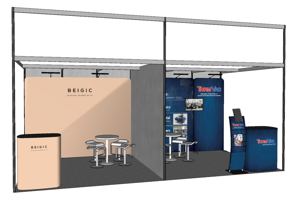 전시장에서 기본으로 제공하는 부스에 적합한 세트 상품으로 3M 백월과 카운터, LED 조명으로 구성됩니다.